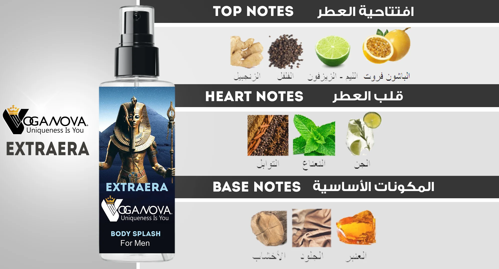 "بادي سبلاش ExtraEra من VogaNova: اكتشف بادي سبلاش رجالي مستوحى من أفخم العطور العالمية بتركيبة فاخرة. اطلب بادي سبلاش ExtraEra الآن بأفضل سعر في مصر."