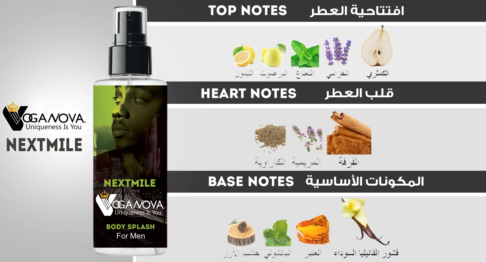 "بادي سبلاش NextMile من VogaNova: اكتشف بادي سبلاش رجالي مستوحى من أفخم العطور العالمية بتركيبة فاخرة. اطلب بادي سبلاش NextMile الآن بأفضل سعر في مصر."
