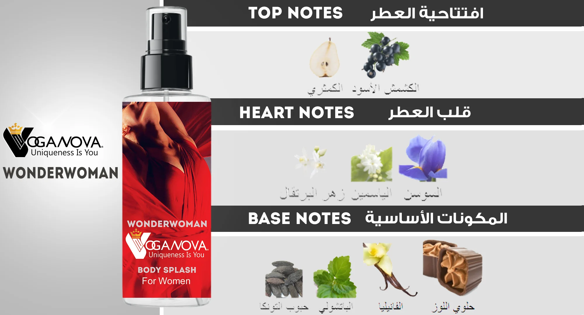 بادي سبلاش WonderWoman من VogaNova: اكتشفي بادي سبلاش حريمي مستوحى من أفخم العطور العالمية بتركيبة فاخرة. اطلبي بادي سبلاش WonderWoman الآن بأفضل سعر في مصر